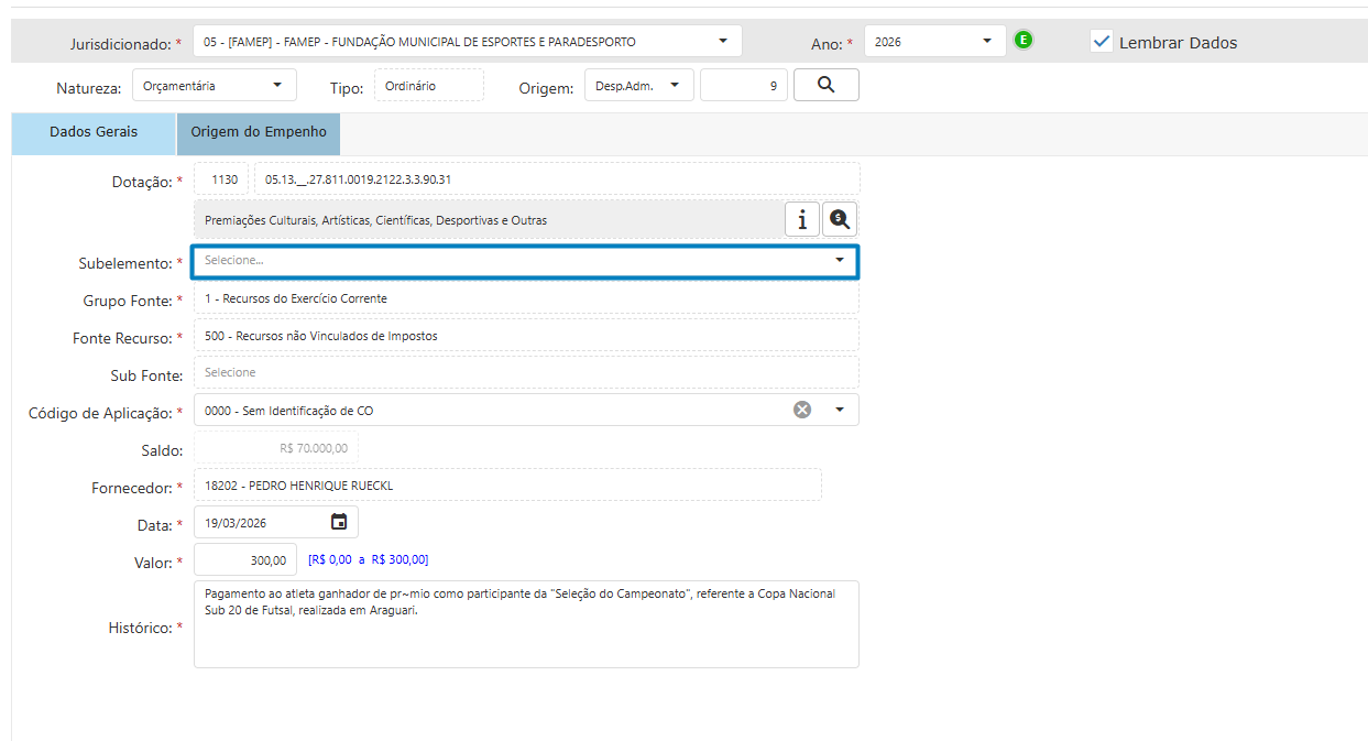 Salve o empenho no botão "Salvar"