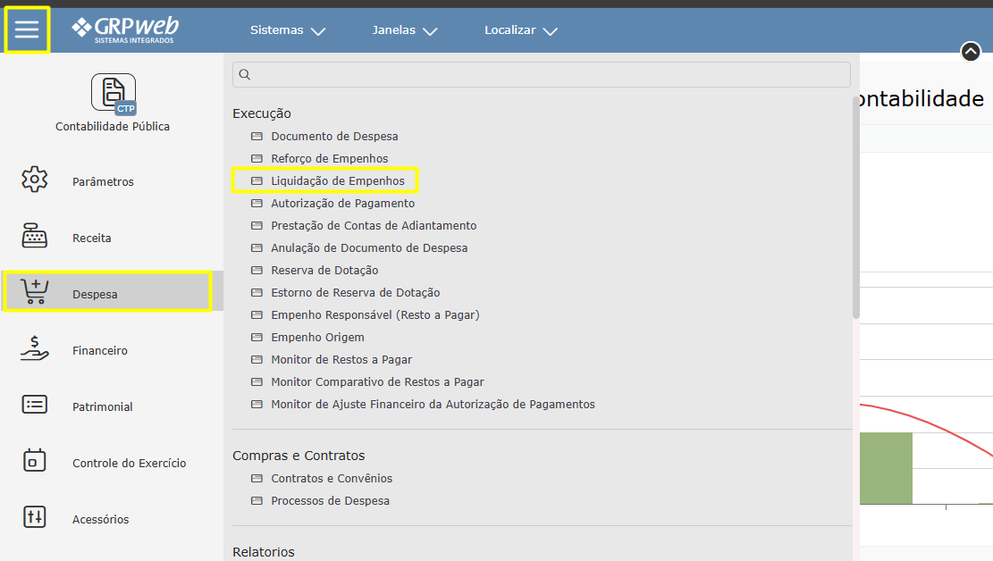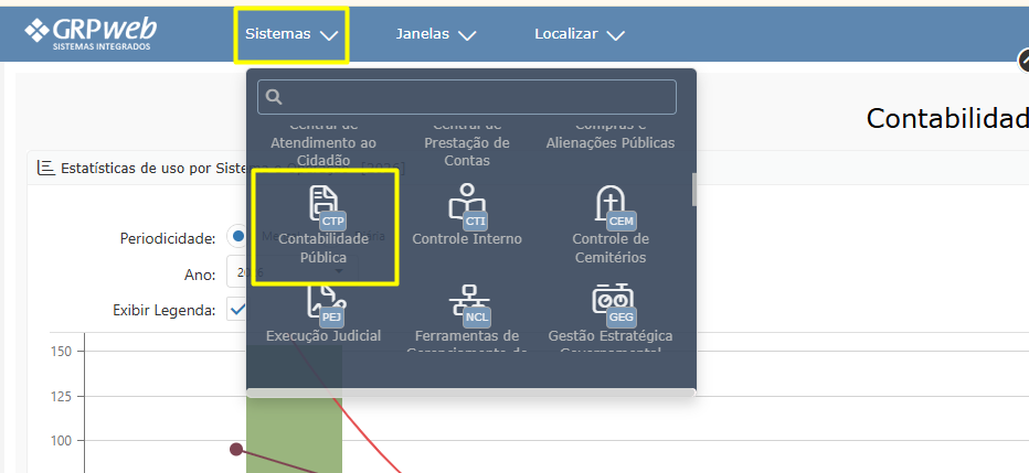 Após realizar login, acesse o sistema de contabilidade pública web